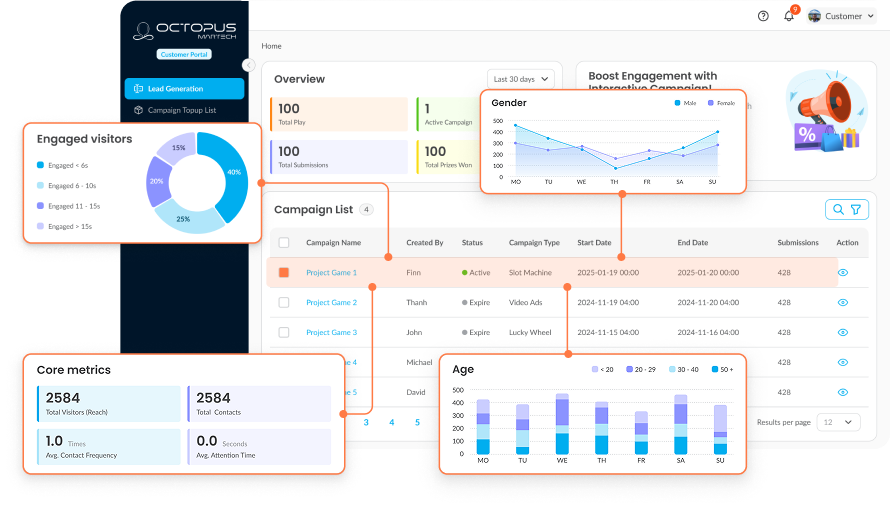 Octopus Martech changes that. We bring the power of automation, analytics, and personalization to the physical world—through gamified, branded experiences that scale across cities, countries, and channels.